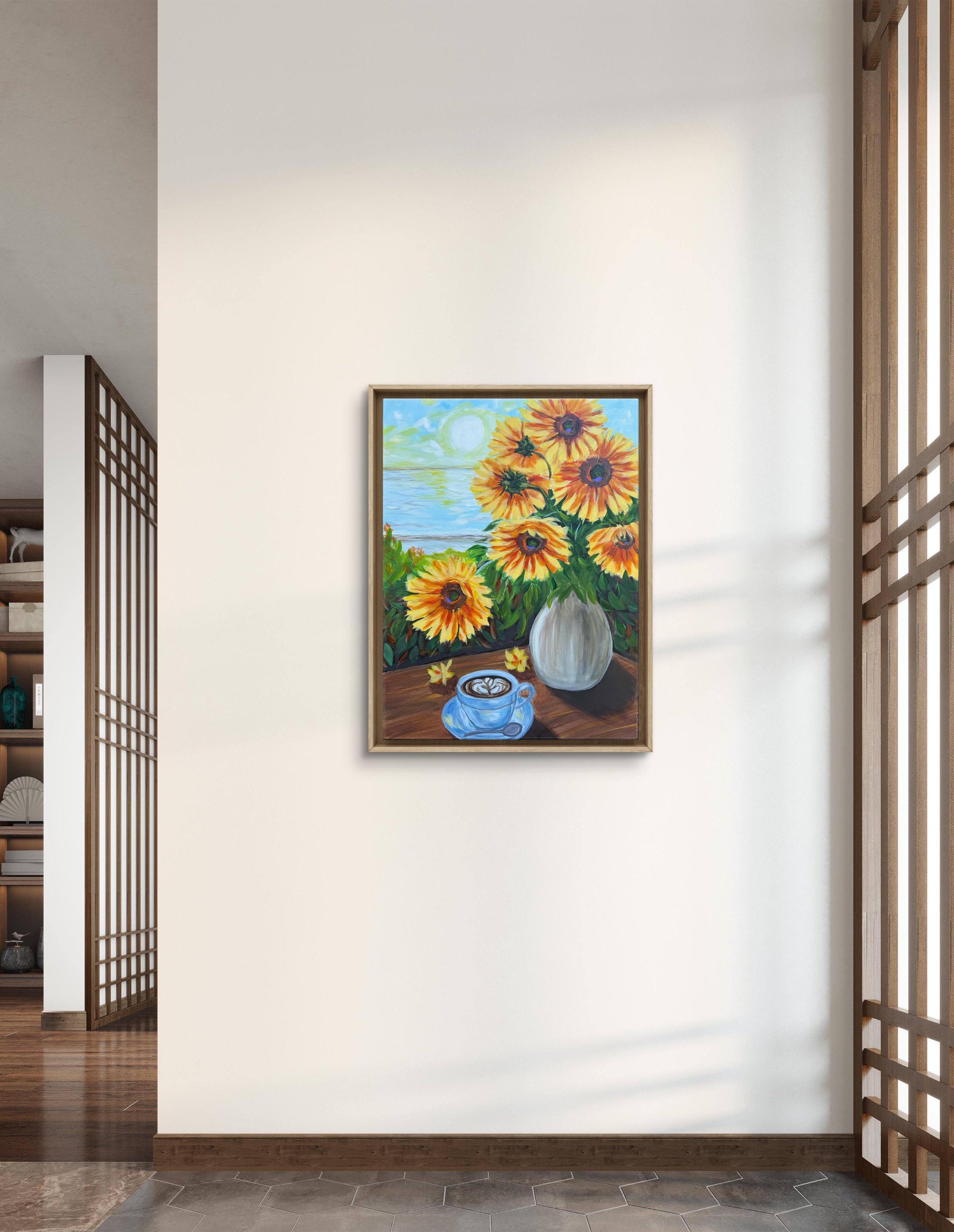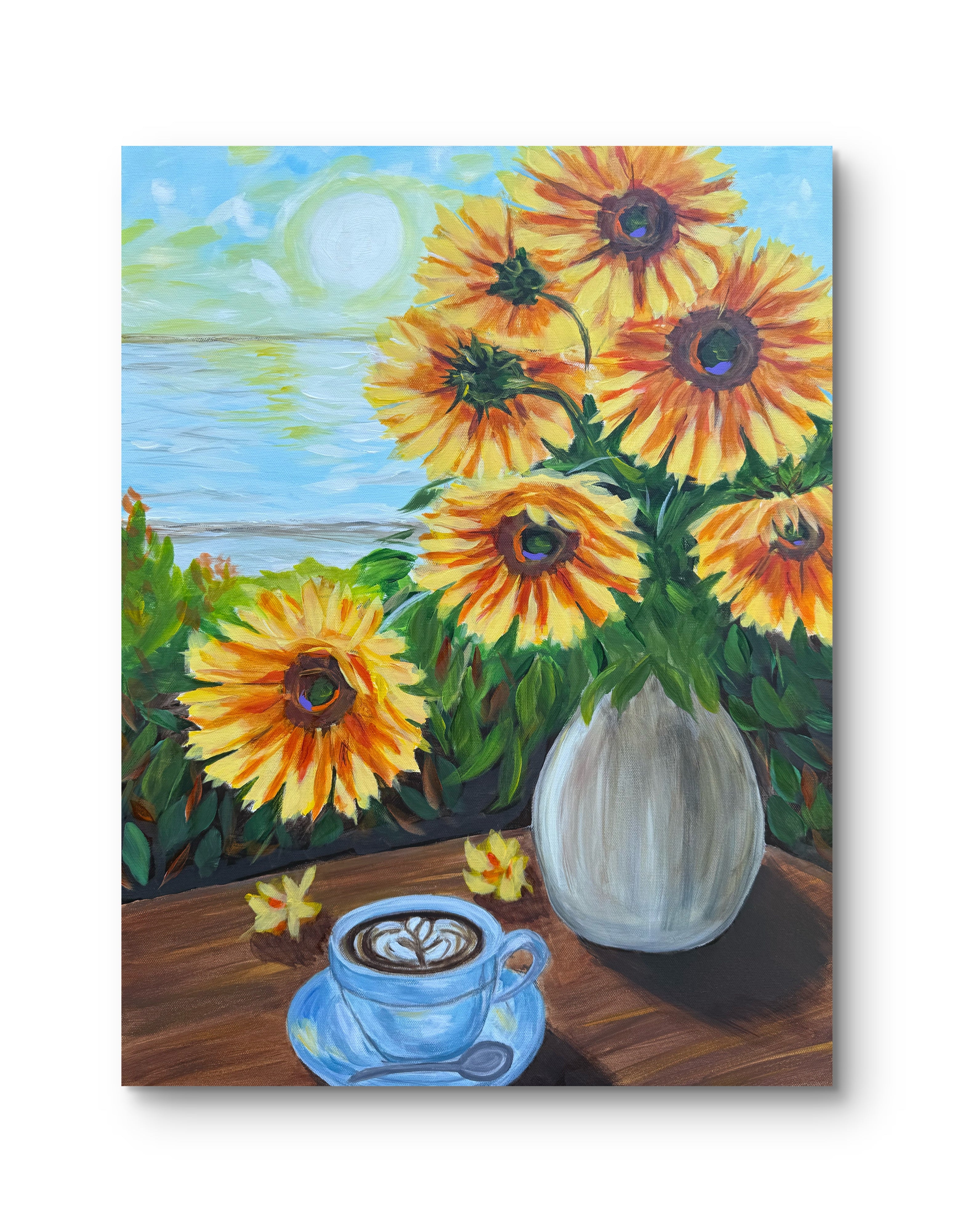 Bright blooms, a warm drink, and the sea beyond—A Cup of Sunshine holds the kind of morning that lingers in memory. It’s a gentle reminder that joy often lives in life’s simplest moments, glowing quietly and filling the day with warmth.
